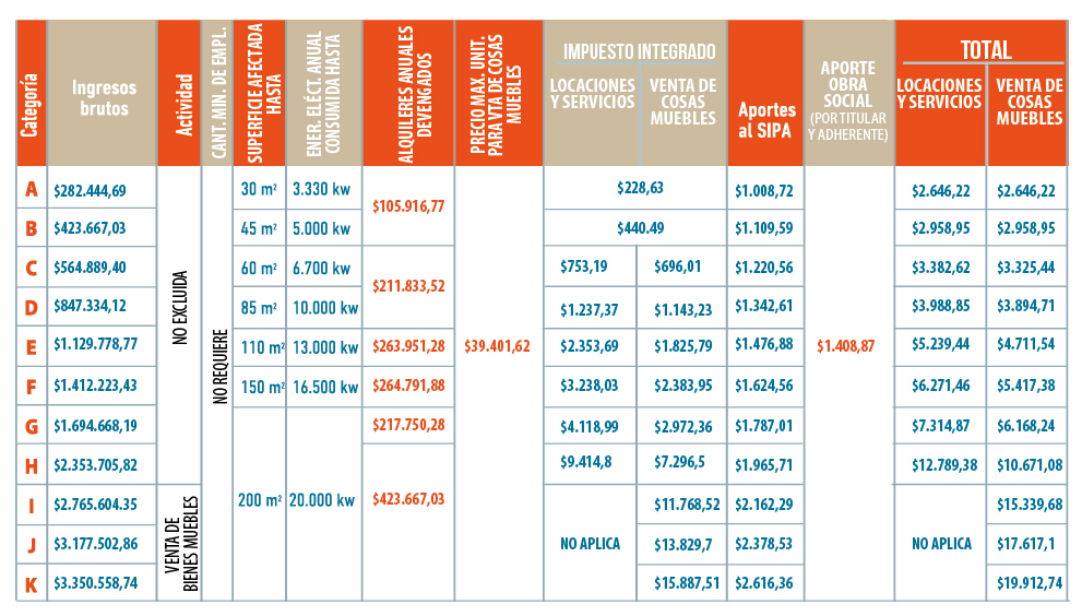 NUEVAS ESCALAS Y VALORES DE LAS CATEGORÍAS DEL MONOTRIBUTO